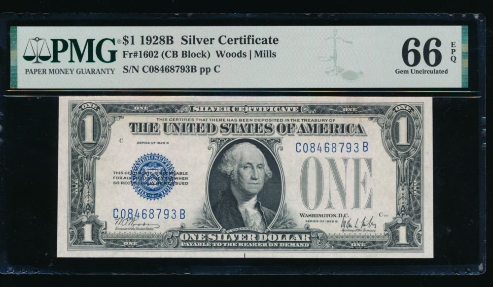 One 1928B $1 Silver Certificate PMG 66EPQ.