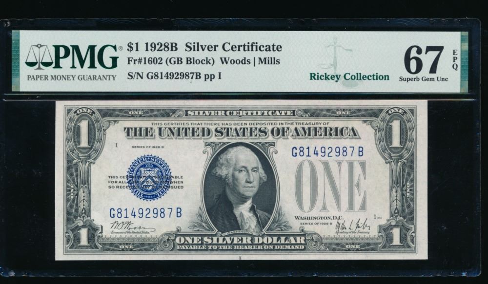 One 1928B $1 Silver Certificate PMG 67EPQ.