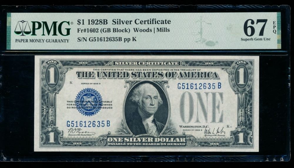 One 1928B $1 Silver Certificate PMG 67EPQ.