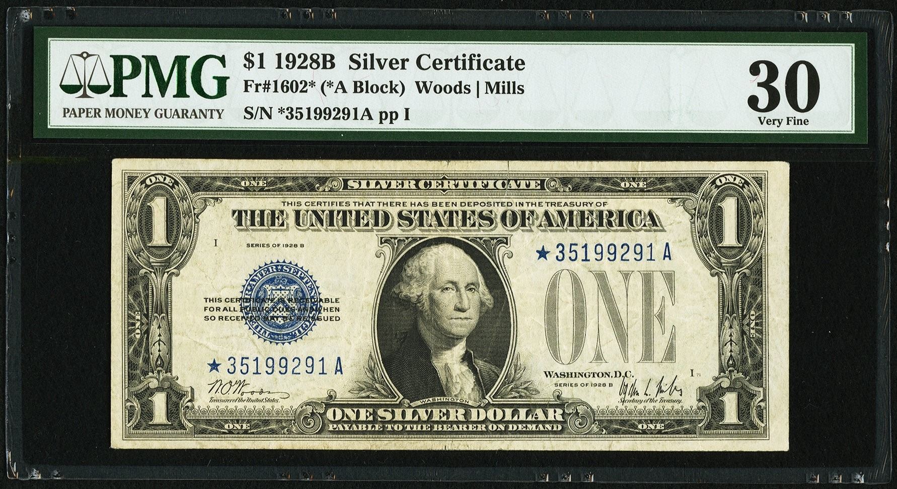 One 1928B $1 Silver Certificate STAR Note PMG 30.