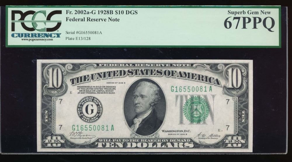 One 1928B $10 Chicago Federal Reserve Note PCGS 67PPQ.