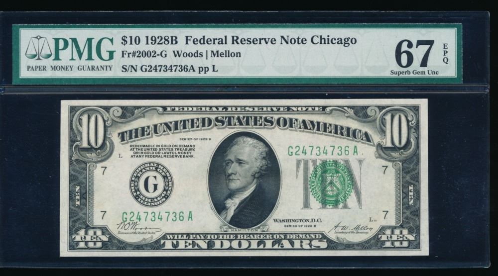 One 1928B $10 Chicago Federal Reserve Note PMG 67EPQ.