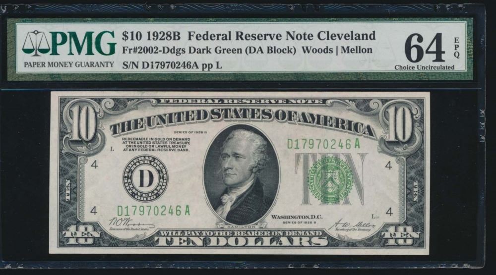 One 1928B $10 Cleveland Federal Reserve Note PMG 64EPQ.