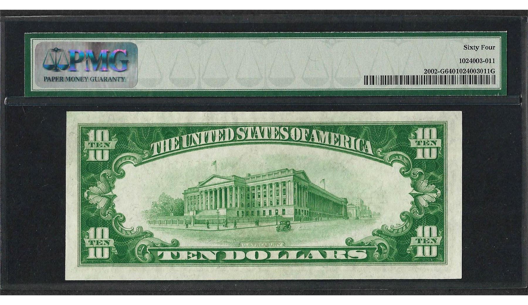 1928B $10 Federal Reserve Note Fr.2002-G PMG Choice Uncirculated 64