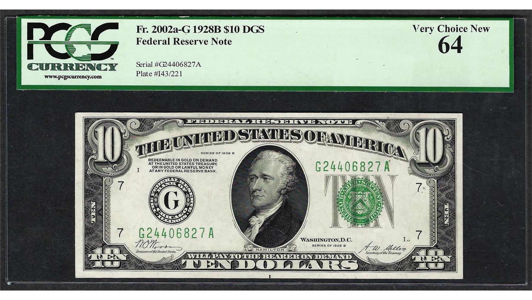 One 1928B $10 Federal Reserve Note Fr.2002a PCGS Very Choice New 64. PCGS Graded.