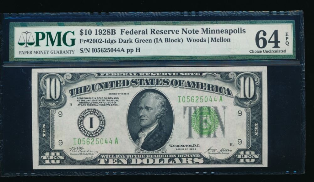 One 1928B $10 Minneapolis Federal Reserve Note PMG 64EPQ.