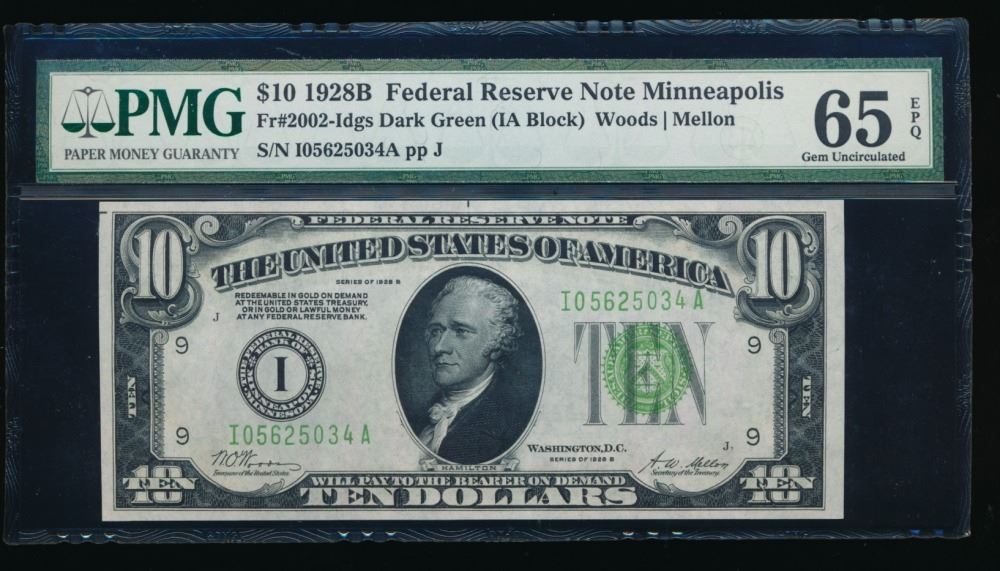 One 1928B $10 Minneapolis Federal Reserve Note PMG 65EPQ.