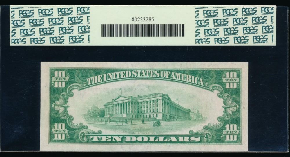 One 1928B $10 St Louis Federal Reserve Note PCGS 66PPQ.