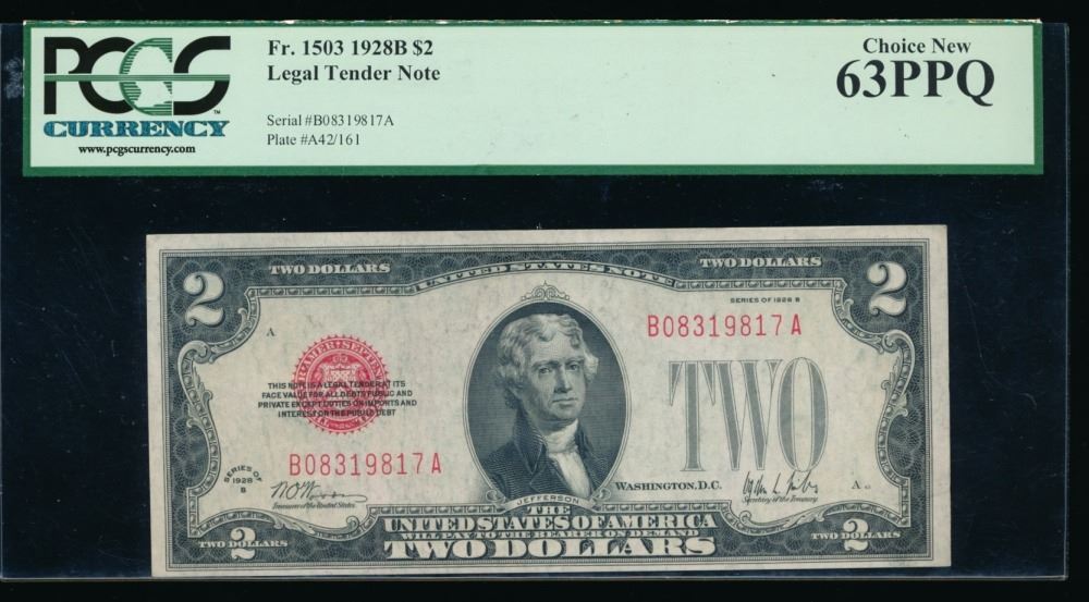 One 1928B $2 Legal Tender Note PCGS 63PPQ.