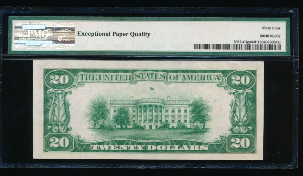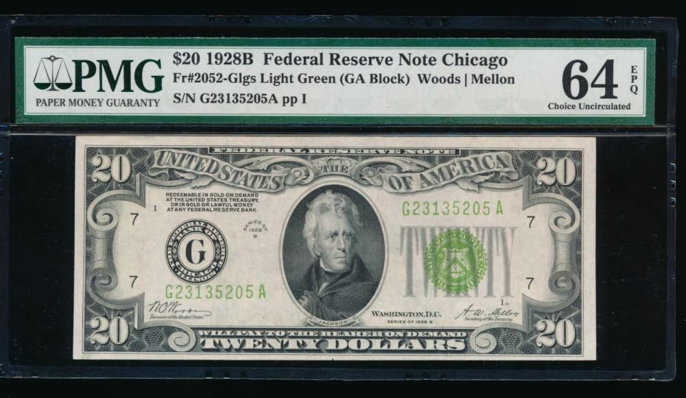 One 1928B $20 Chicago FRN PMG 64EPQ.