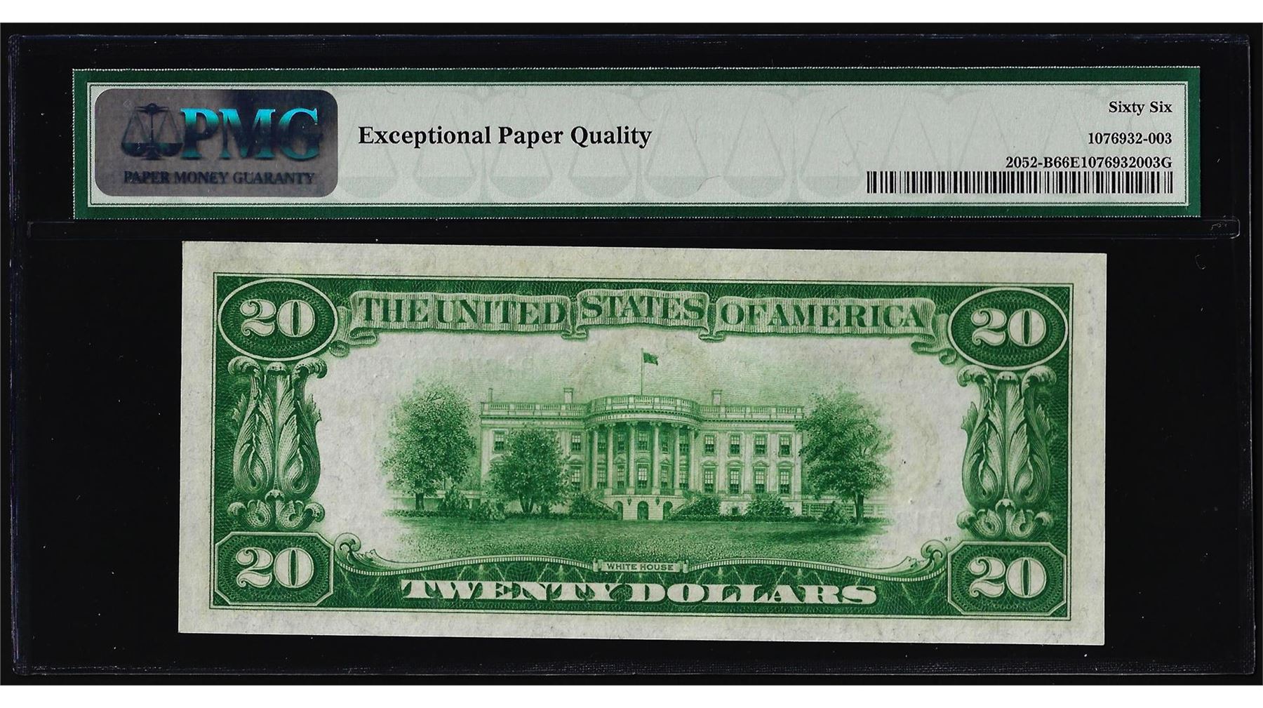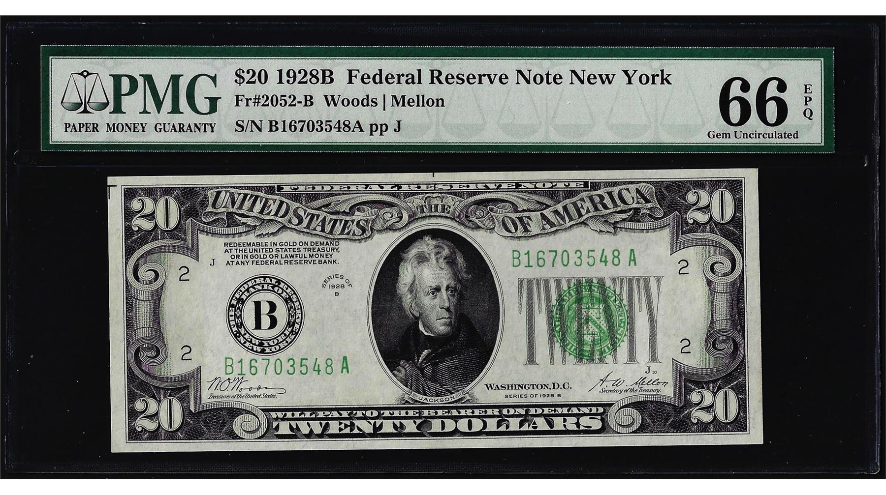 1928B $20 Federal Reserve Note New York Fr.2052-B PMG Gem Uncirculated 66EPQ