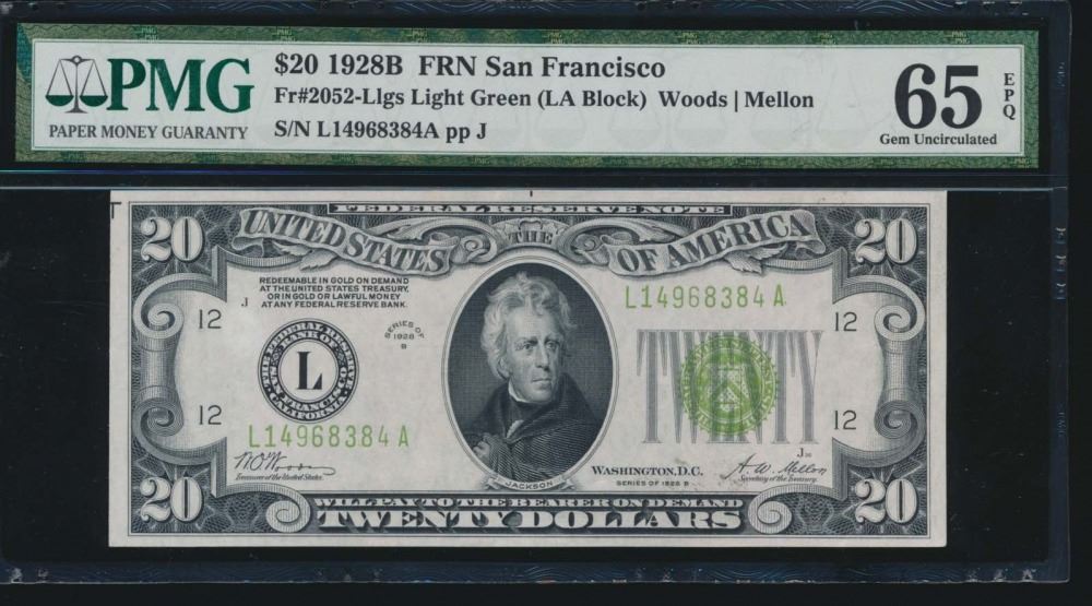 One 1928B $20 San Francisco Federal Reserve Note PMG 65EPQ.