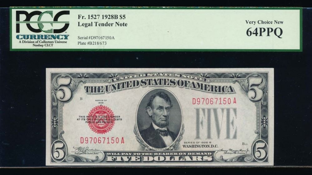 One 1928B $5 Legal Tender Note PCGS 64PPQ.