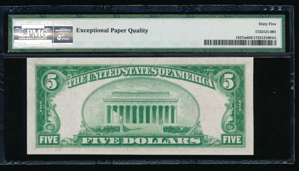 One 1928B $5 Legal Tender Note PMG 65EPQ.