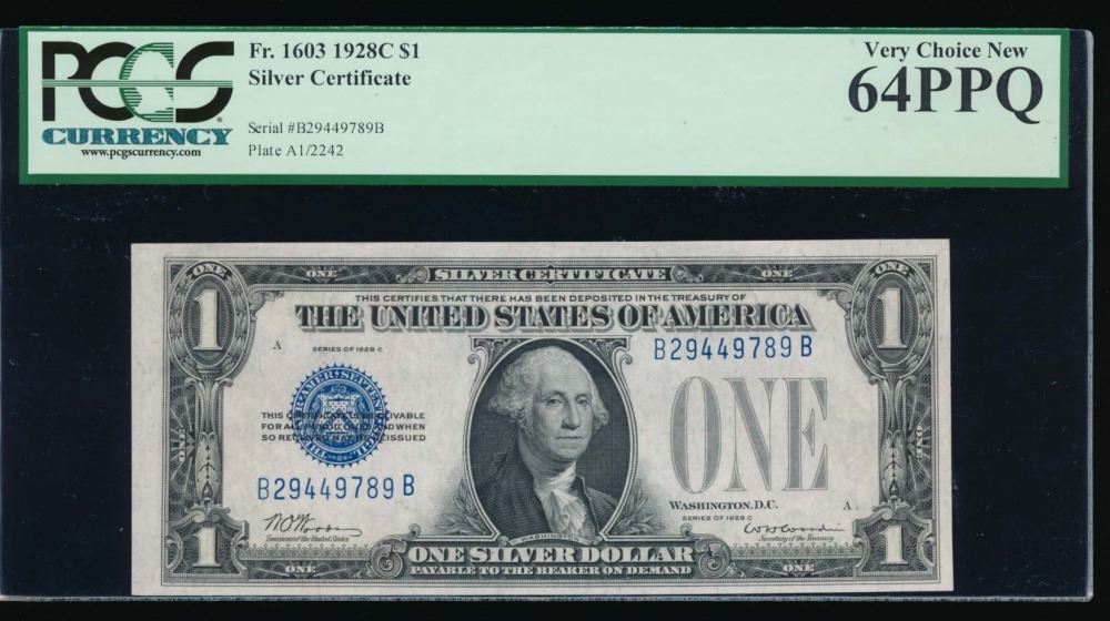One 1928C $1 Silver Certificate PCGS 64PPQ.
