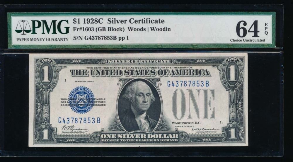 One 1928C $1 Silver Certificate PMG 64EPQ.