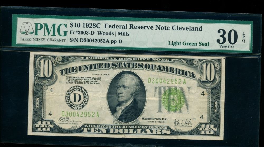 One 1928C $10 Cleveland FRN PMG 30EPQ.