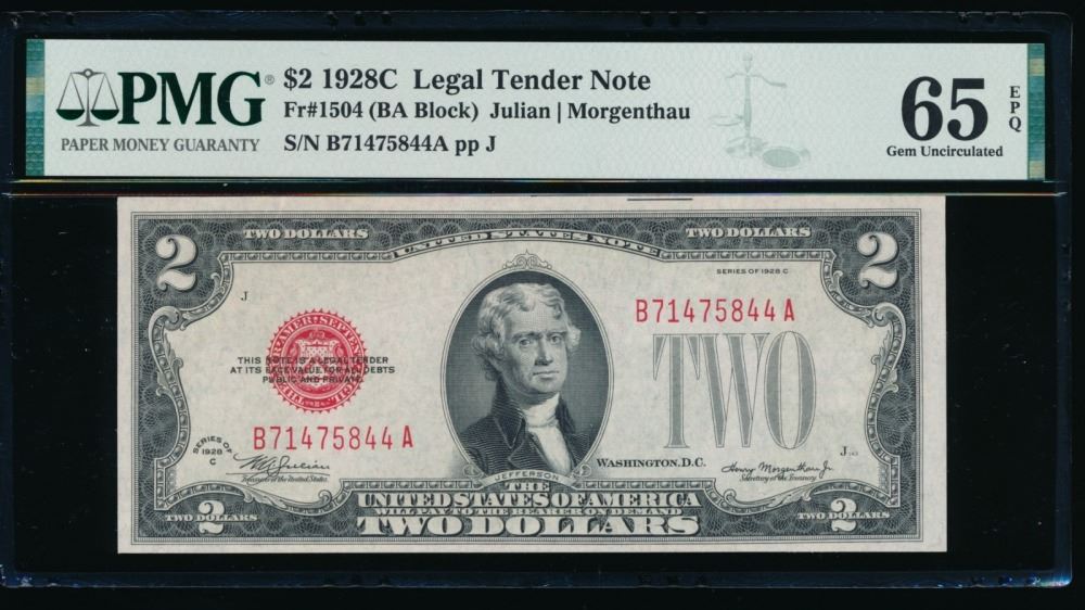 One 1928C $2 Legal Tender Note PMG 65EPQ.