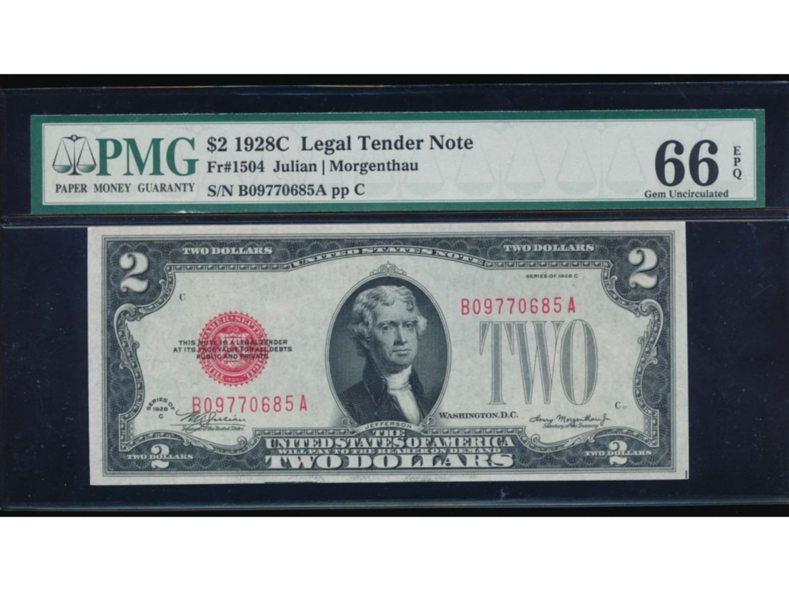 One 1928C $2 Legal Tender Note PMG 66EPQ.