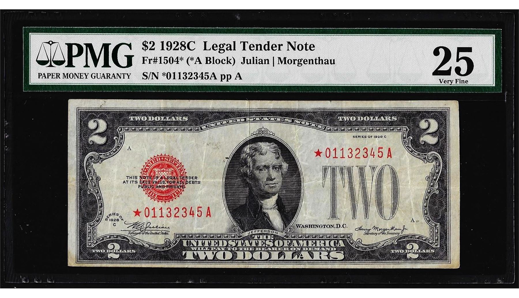 One 1928C $2 Legal Tender STAR Note Fr.1504* PMG Very Fine 25. PMG Certified.