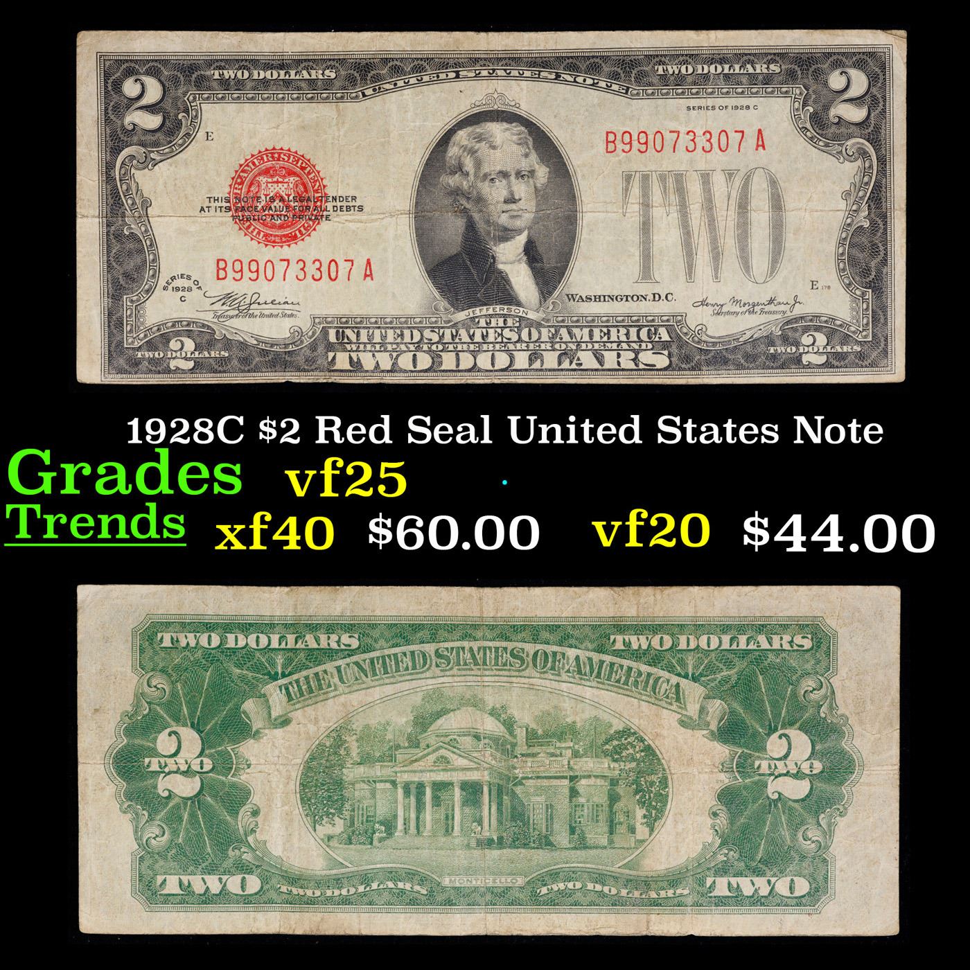 1928C $2 Red Seal United States Note Grades vf+.