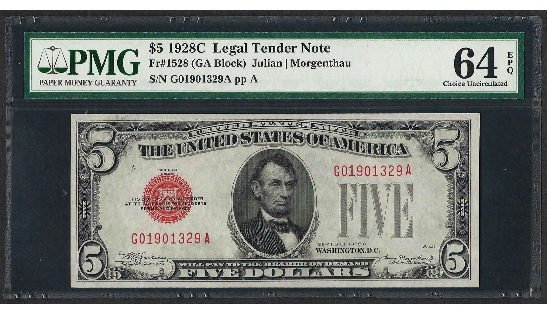 1928C $5 Legal Tender Note Fr.1528 PMG Choice Uncirculated 64EPQ
