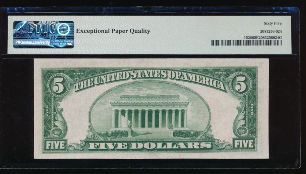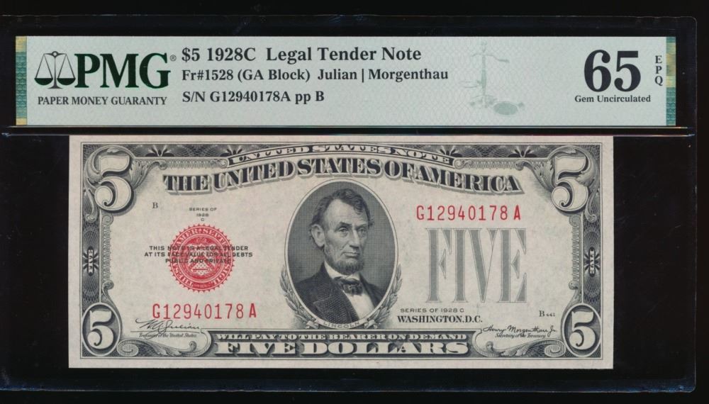 One 1928C $5 Legal Tender Note PMG 65EPQ.