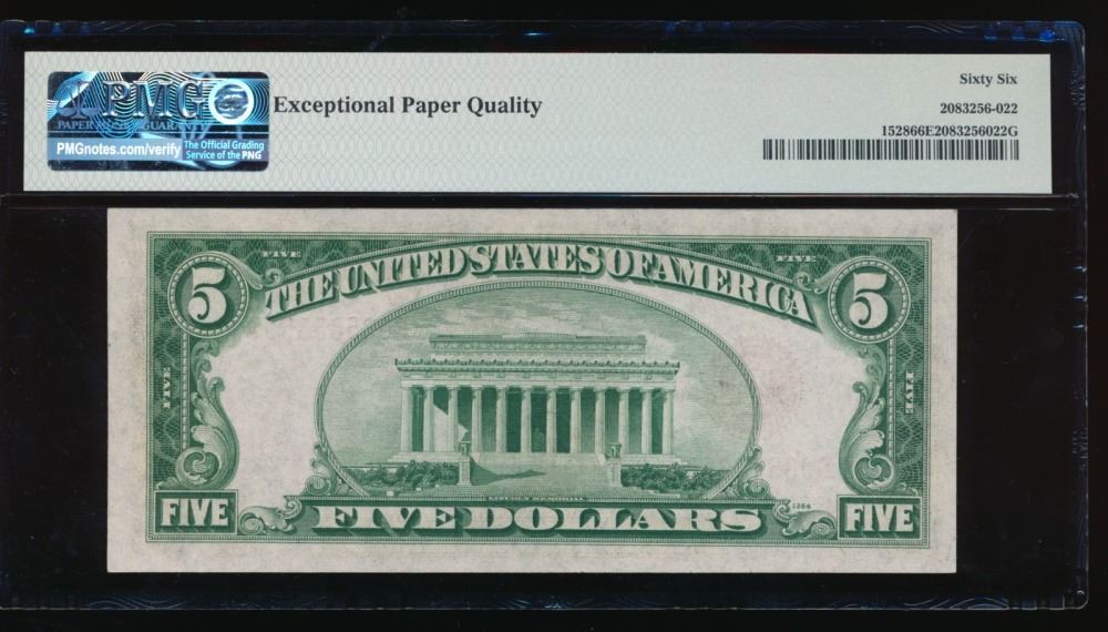 One 1928C $5 Legal Tender Note PMG 66EPQ.