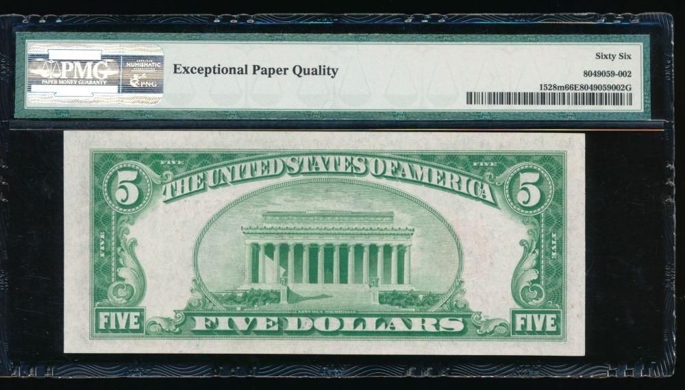 One 1928C $5 Mule Legal Tender Note PMG 66EPQ.