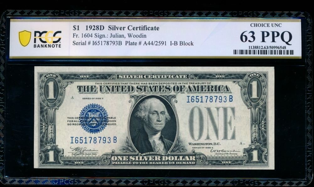 One 1928D $1 Silver Certificate PCGS 63PPQ.