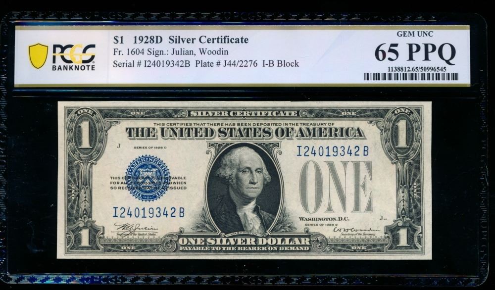 One 1928D $1 Silver Certificate PCGS 65PPQ.
