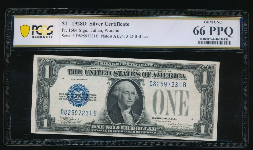 One 1928D $1 Silver Certificate PCGS 66PPQ.