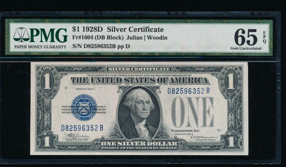 One 1928D $1 Silver Certificate PMG 65EPQ.