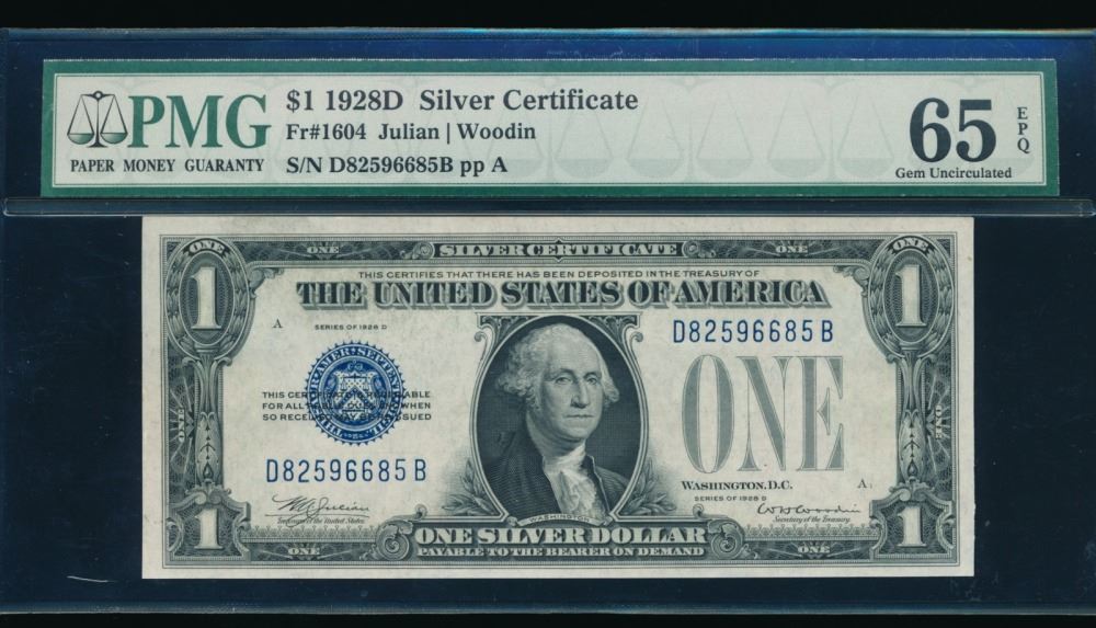 One 1928D $1 Silver Certificate PMG 65EPQ.