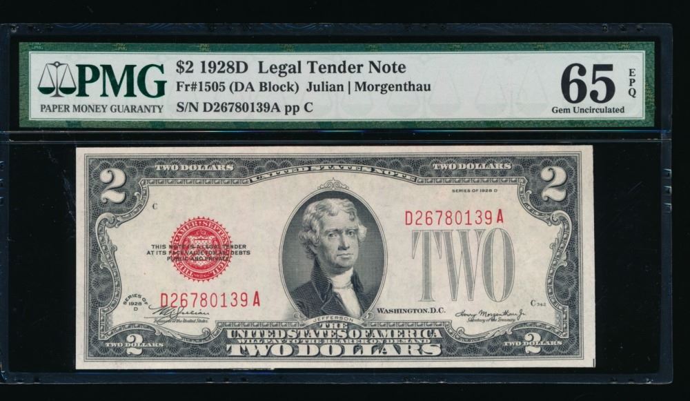 One 1928D $2 Legal Tender Note PMG 65EPQ.