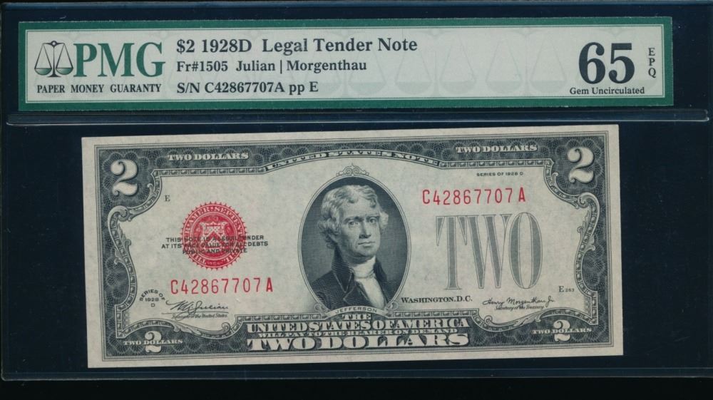 One 1928D $2 Legal Tender Note PMG 65EPQ.