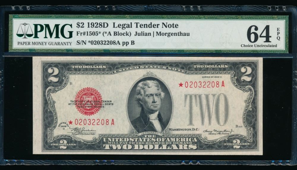 One 1928D $2 STAR Legal Tender Note PMG 64EPQ.