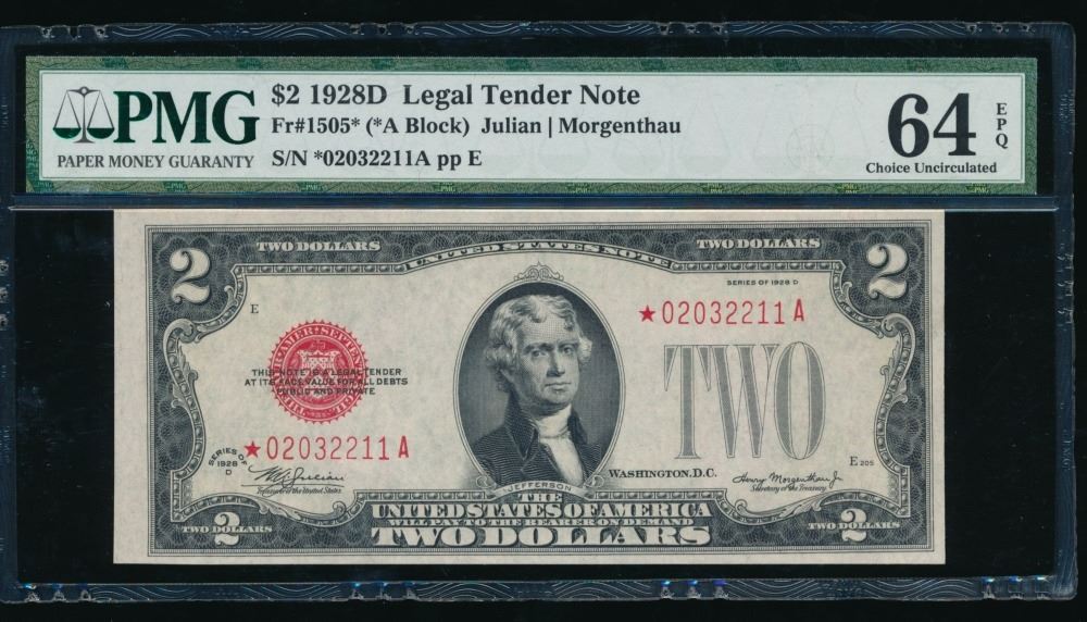 One 1928D $2 STAR Legal Tender Note PMG 64EPQ.