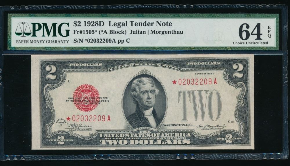 One 1928D $2 STAR Legal Tender Note PMG 64EPQ.