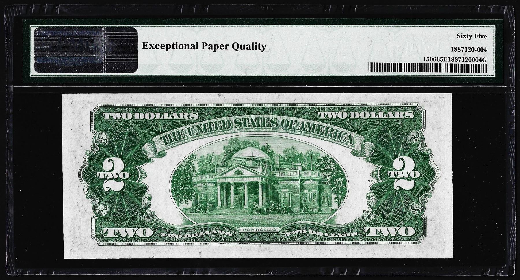 One 1928E $2 Legal Tender Note Fr.1506 PMG Gem Uncirculated 65EPQ.