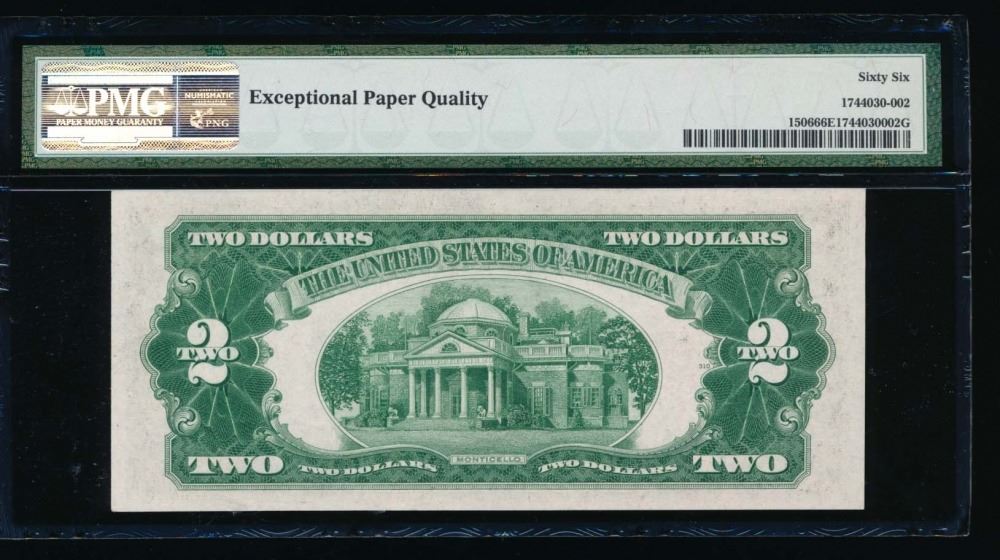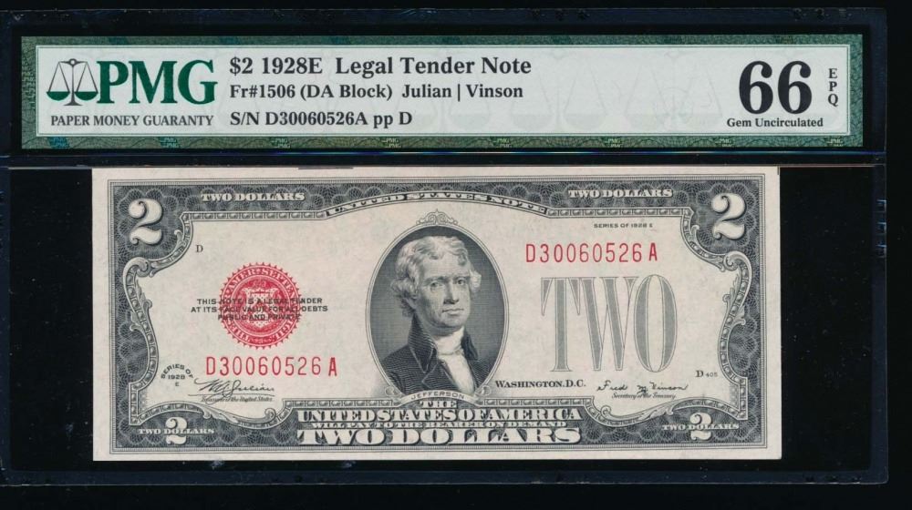 One 1928E $2 Legal Tender Note PMG 66EPQ.