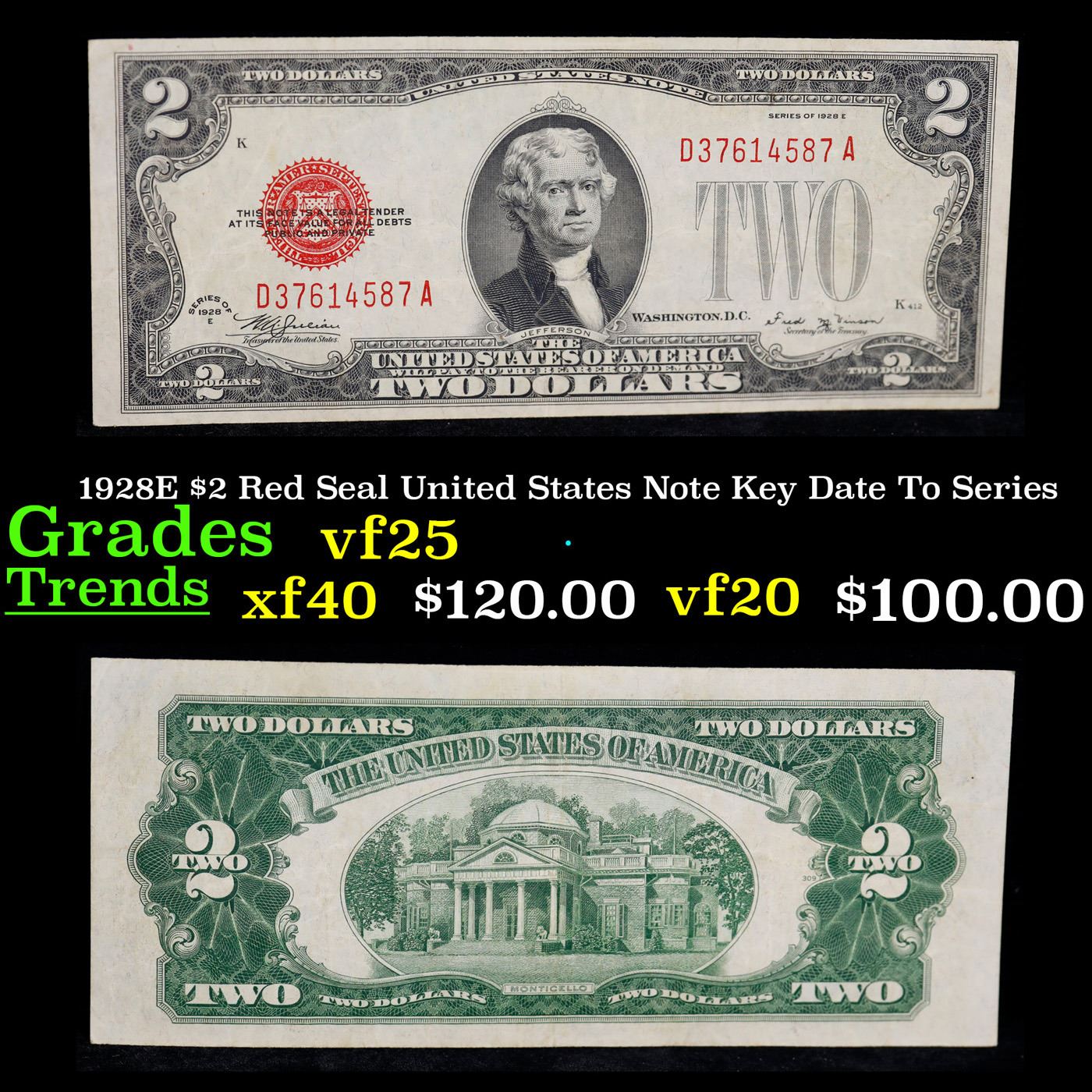 1928E $2 Red Seal United States Note Key Date To Series Grades vf+. Out of about 435 Million 1928 $2 United States Notes Printed only about 1% are 1928E Series Notes Which makes it by far the lowest printed in the series.