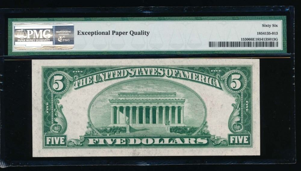 One 1928E $5 Legal Tender Note PMG 66EPQ.
