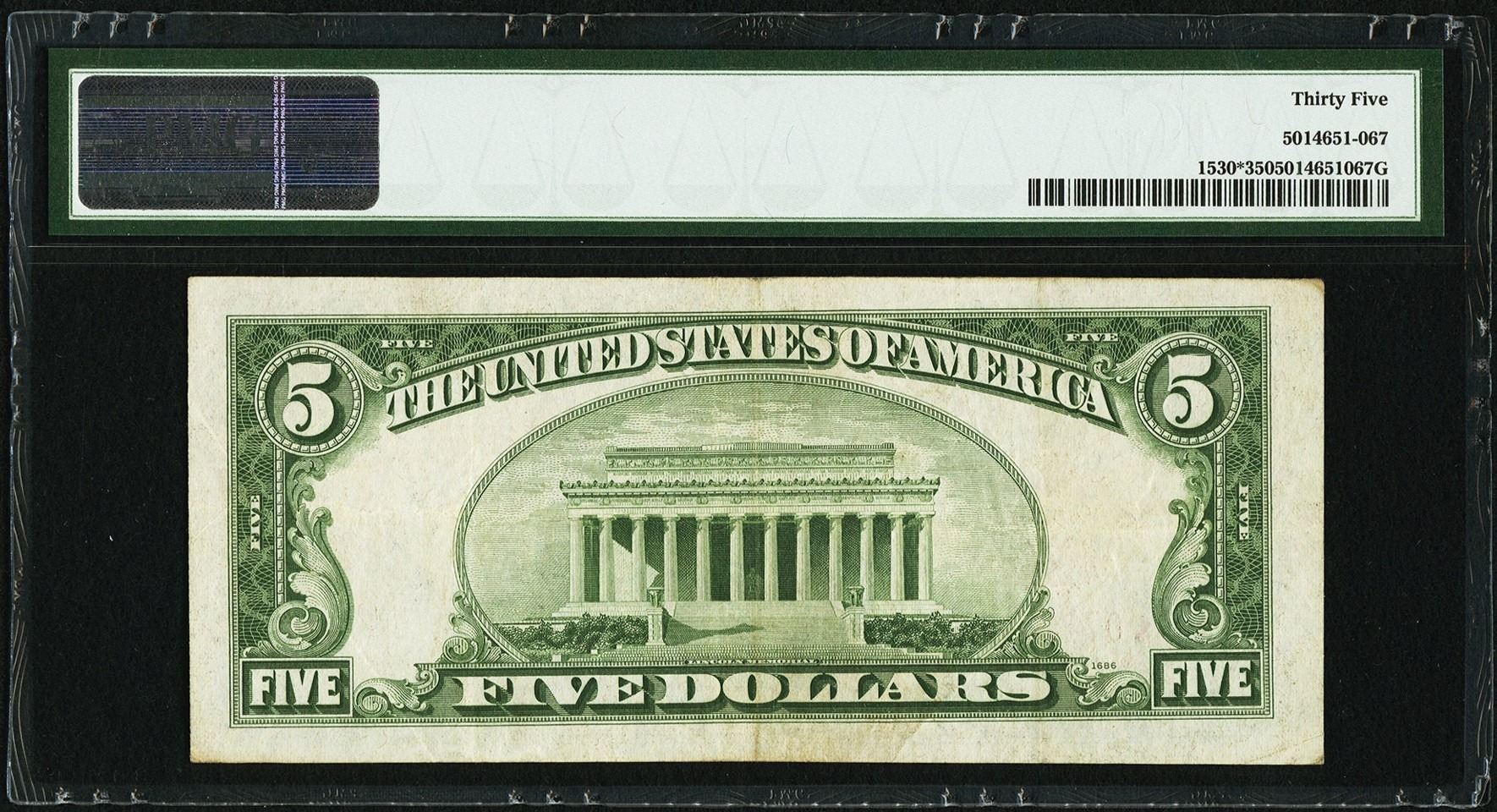 One 1928E $5 Legal Tender STAR Note PMG 35.