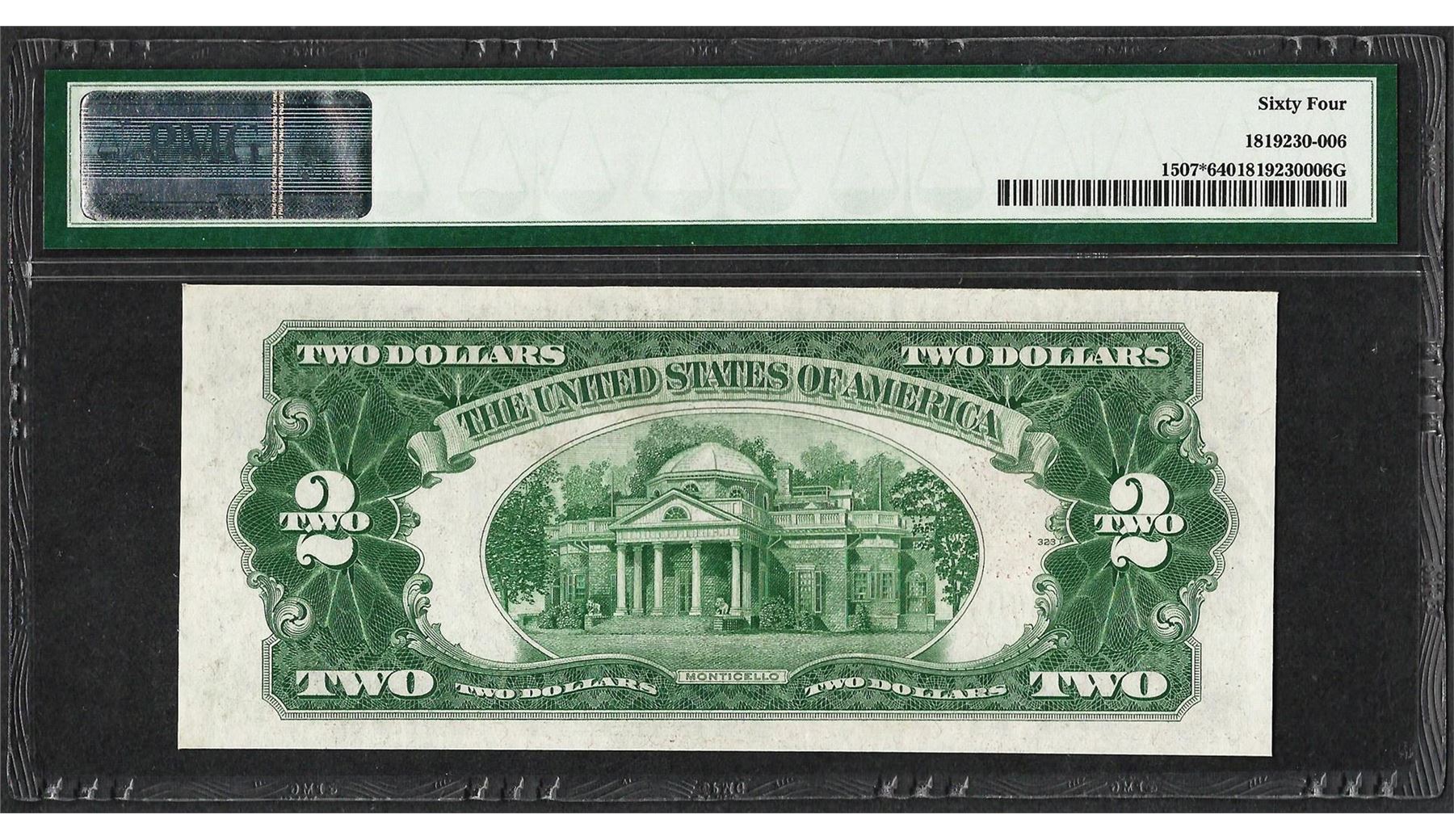 One 1928F $2 Legal Tender Note Fr.1507* PMG Choice Uncirculated 64. PMG Certified.