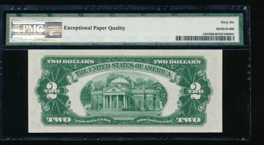 One 1928F $2 Legal Tender Note PMG 66EPQ.