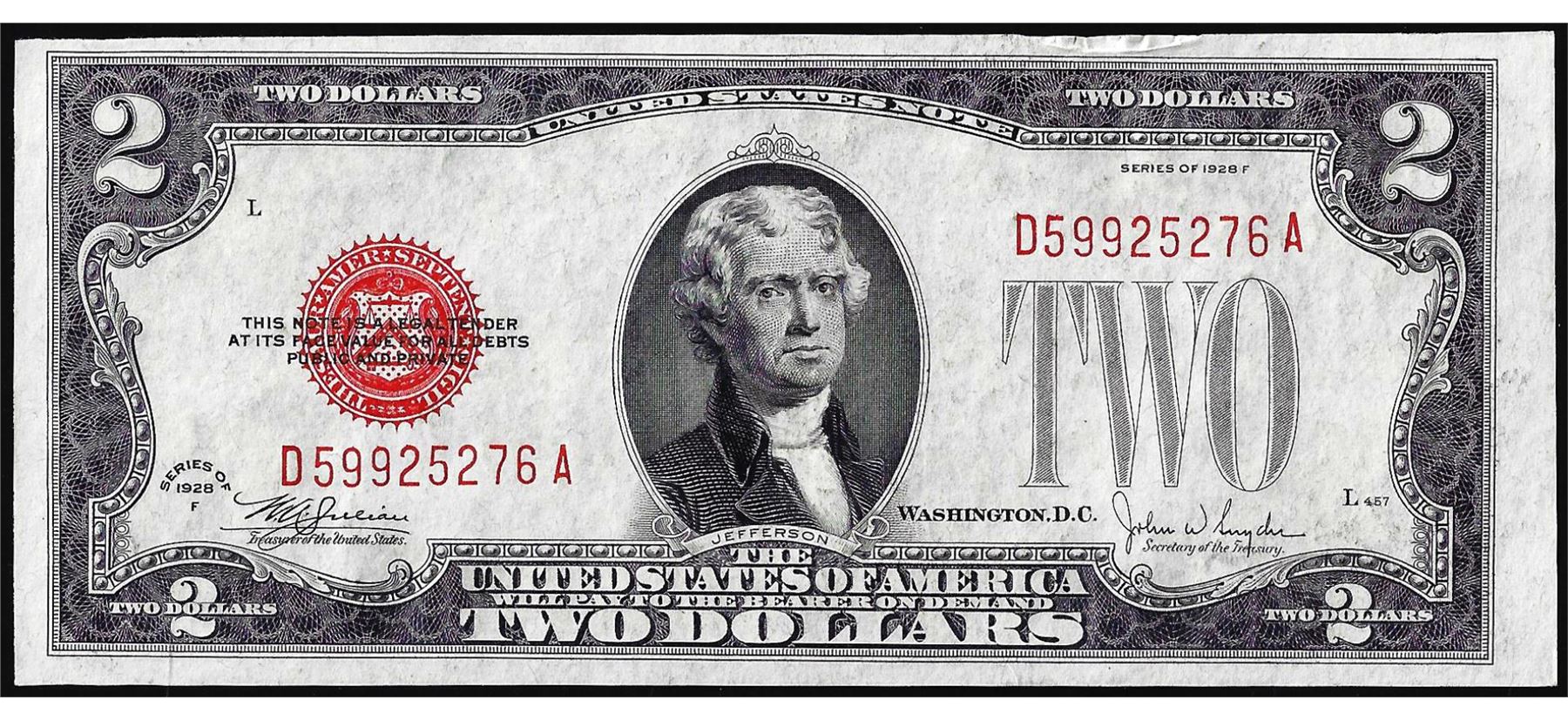 One 1928F $2 Legal Tender Note .