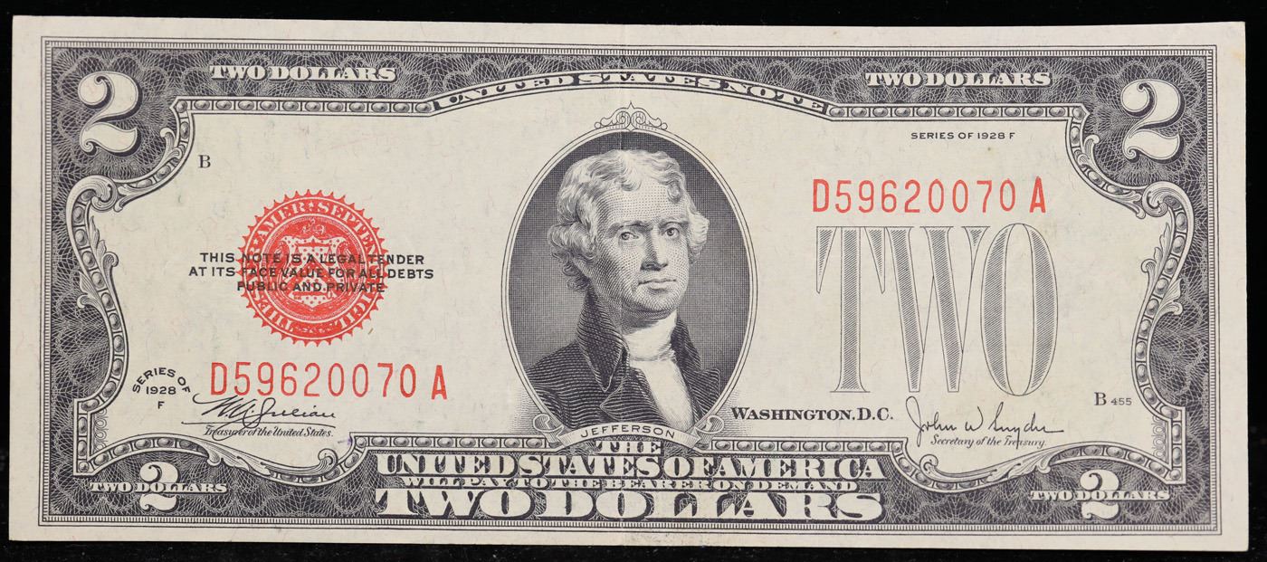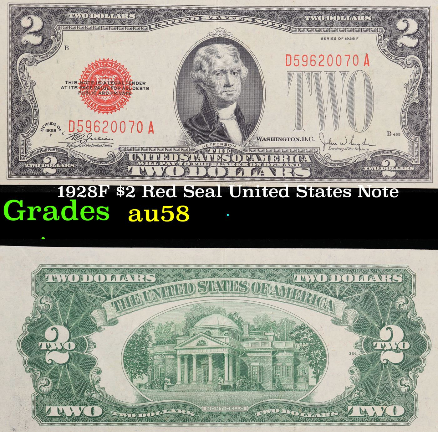 1928F $2 Red Seal United States Note Grades Choice AU/BU Slider.