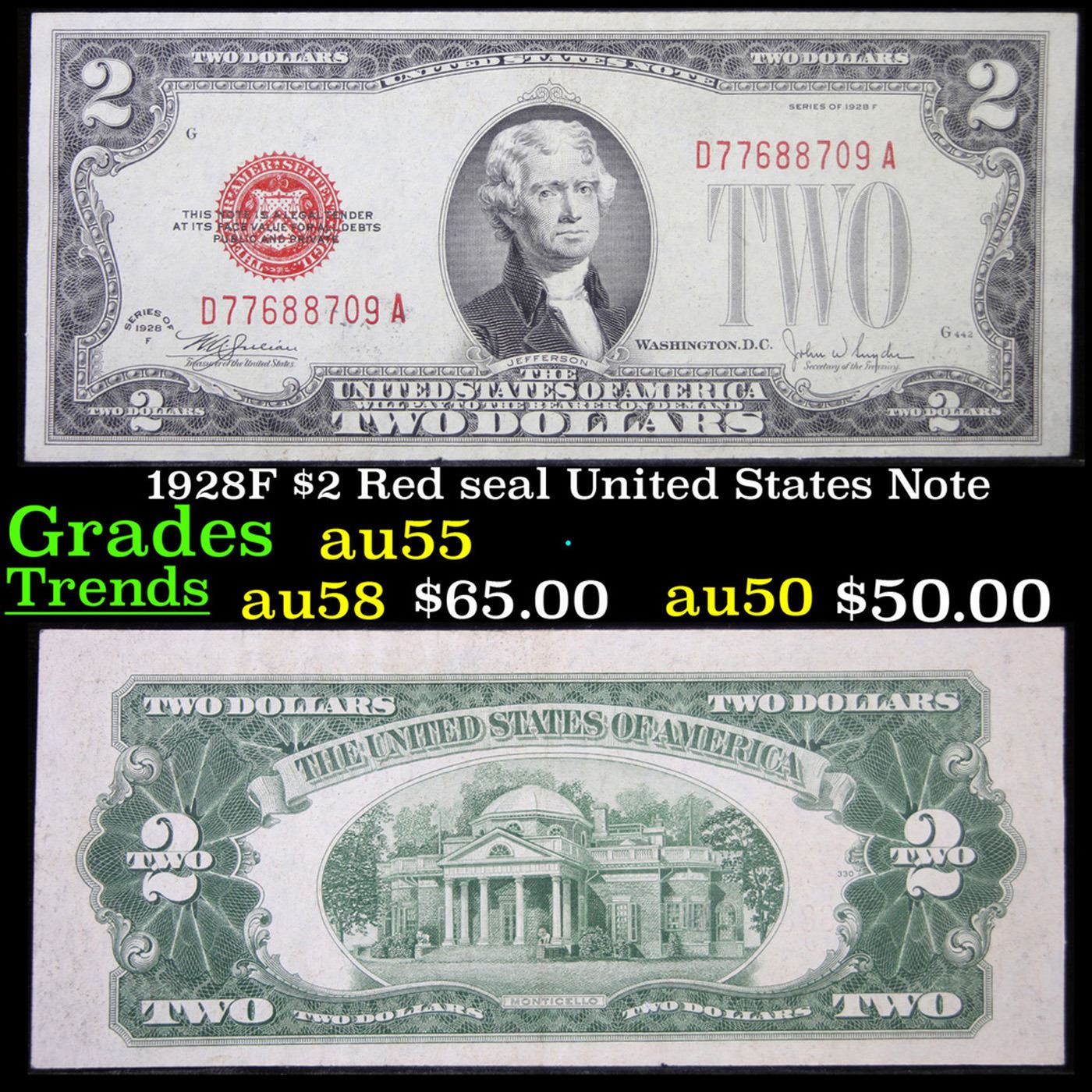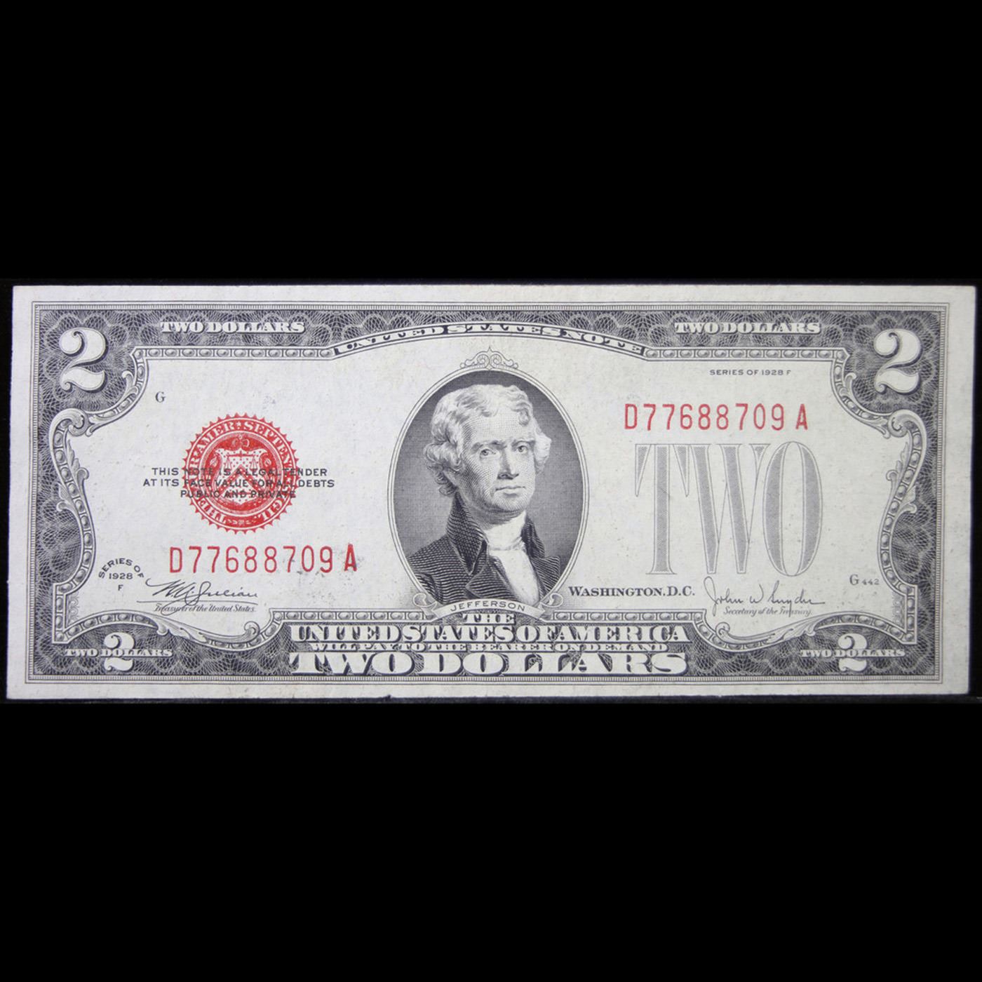 1928F $2 Red seal United States Note Grades Choice AU.