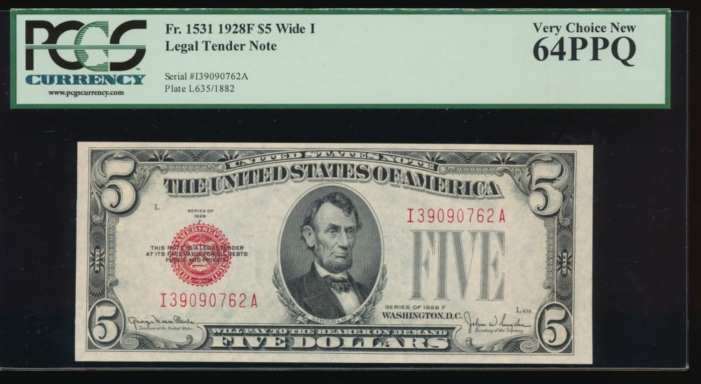 One 1928F $5 Legal Tender Note PCGS 64PPQ.